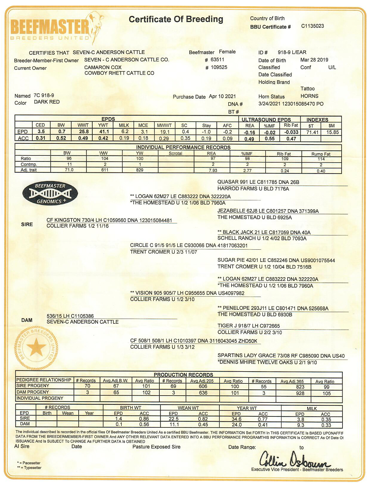 | Breeder: | SEVEN•C ANDERSON CATTLE |