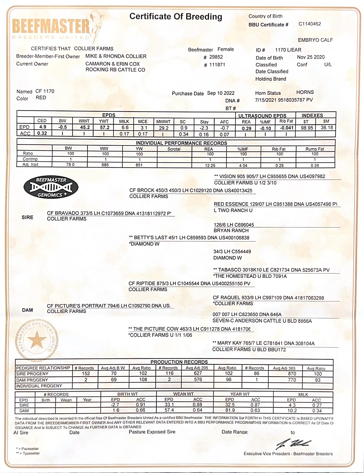 | Sire: | C1073659 CF BRAVADO 373/5 | ||