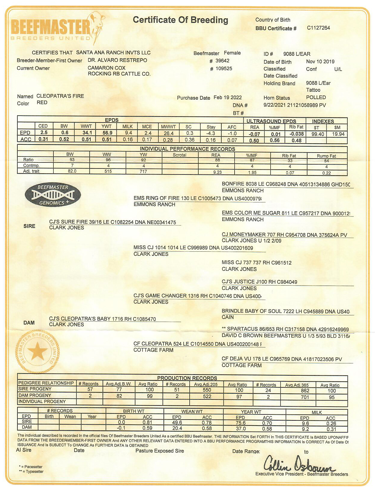 Dam: C1085470 CJ'S CLEOPATRA'S BABY 1716
