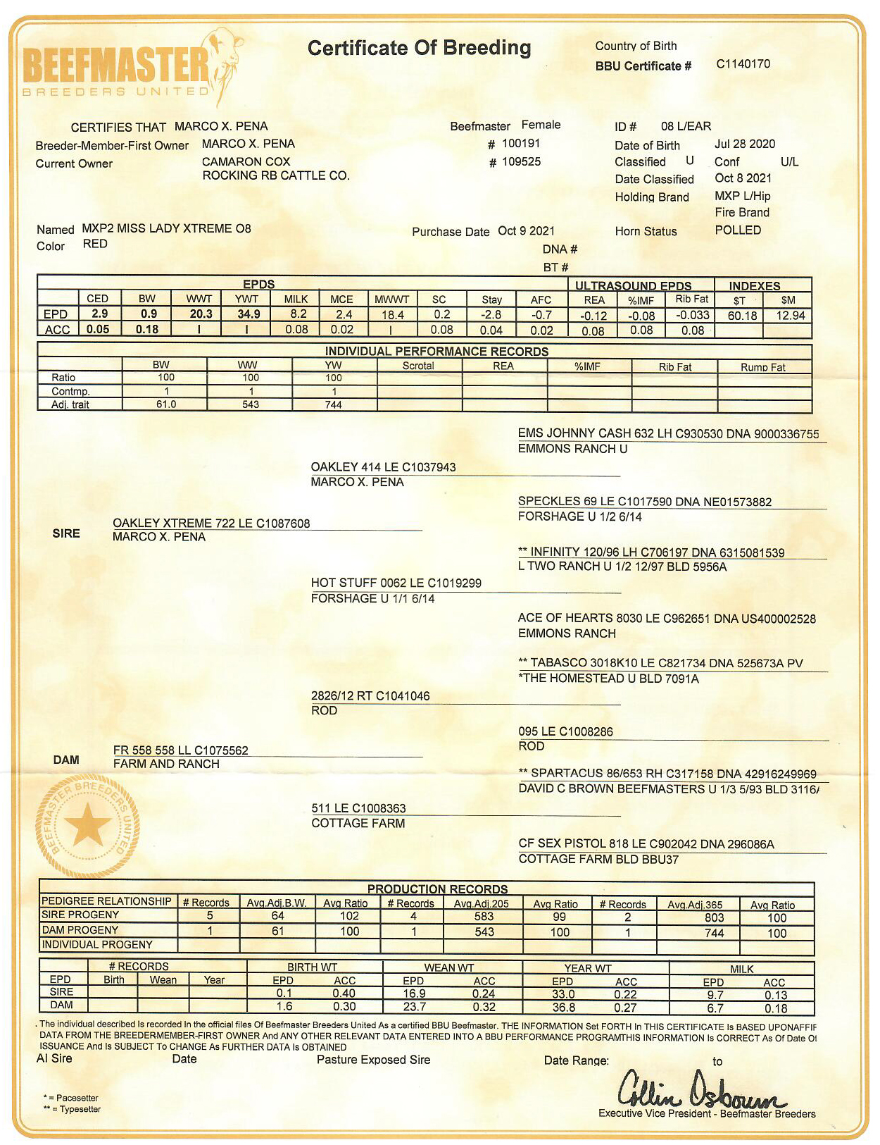 | Breeder: | MARCO X. PENA |