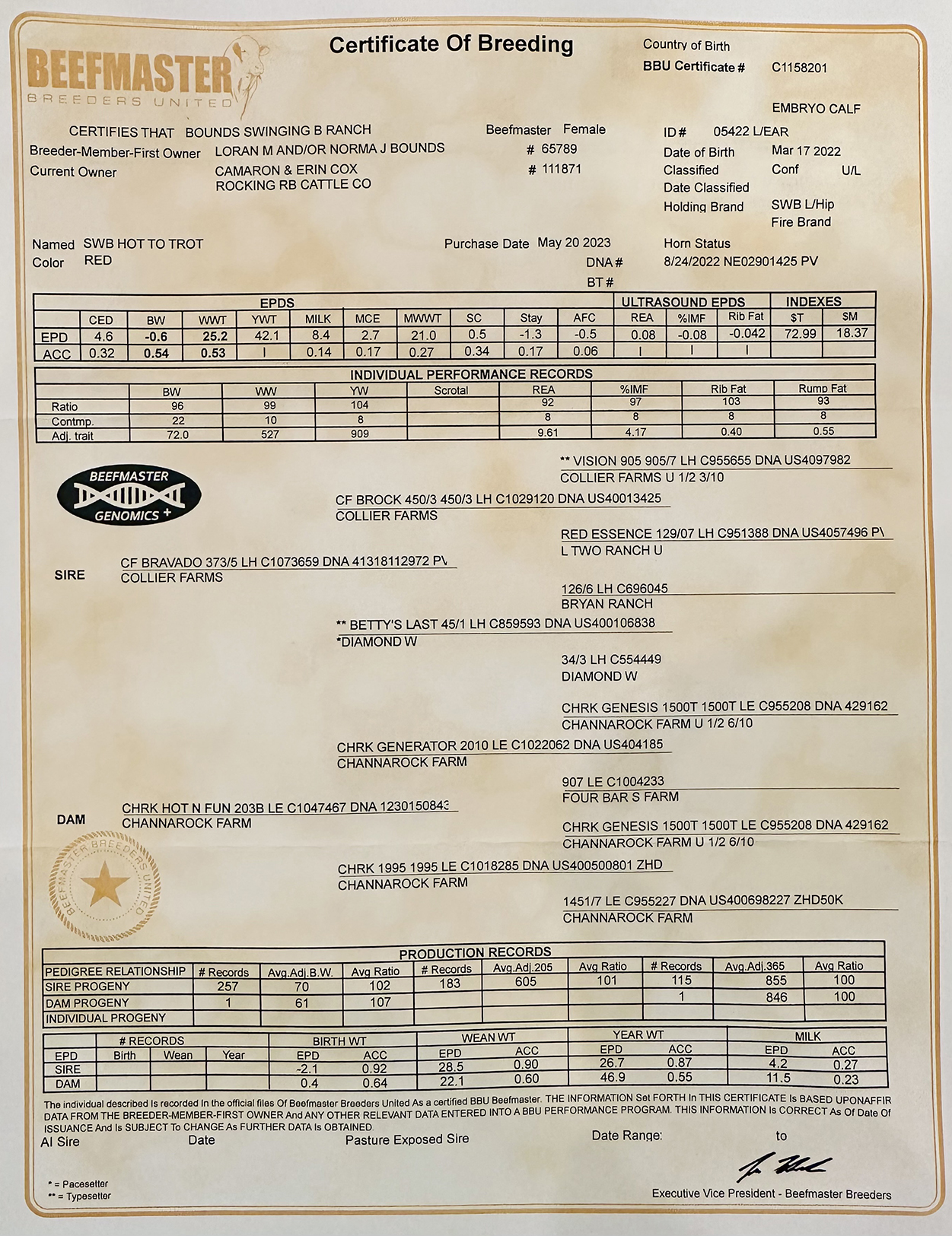 Sire: C1073659 CF BRAVADO 373/5